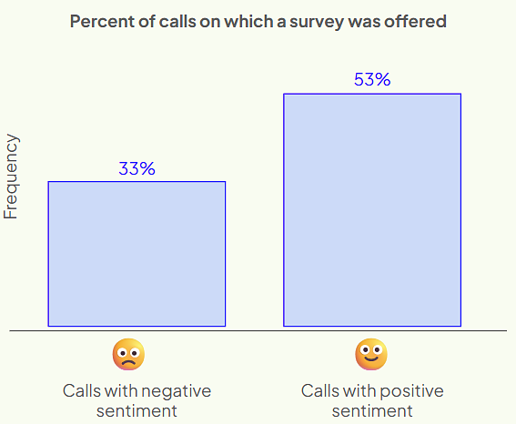Surveys were offered on just 45% of calls. That means more than half of customers never had the chance to share how they felt.