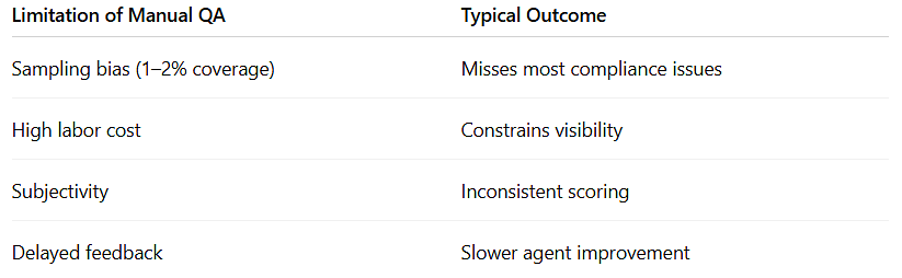 For decades, QA teams have listened to just 1–2% of calls. Not because leaders wanted limited visibility, but because there weren’t enough hours in the day.